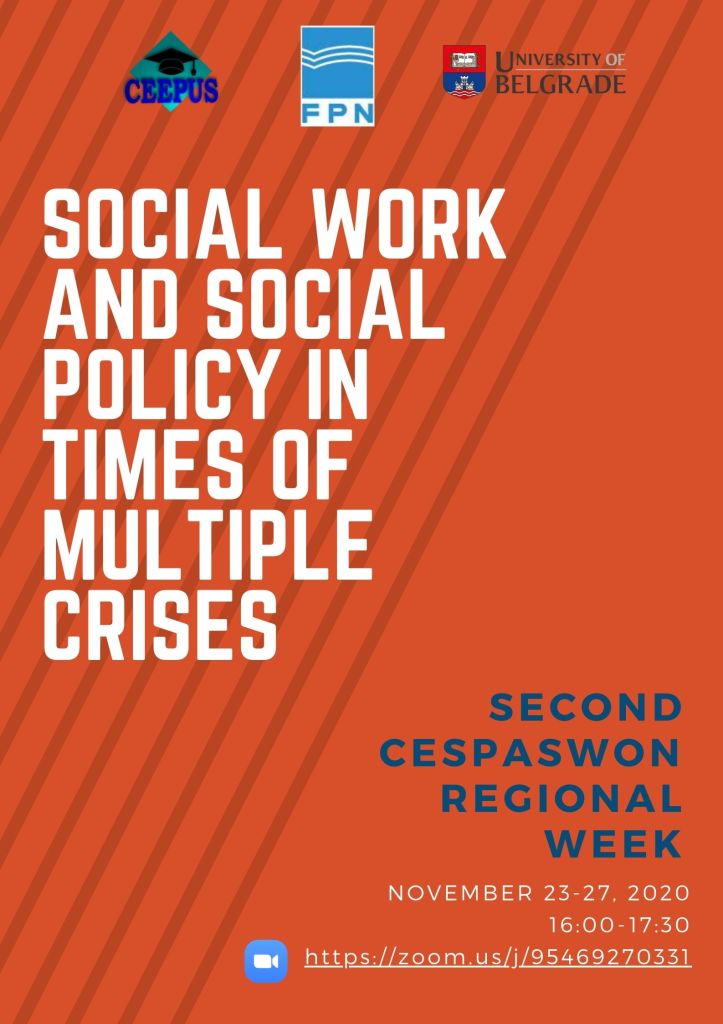 The regional week serves as a gathering point among all partner universities, where through lectures and seminars a more broader regional social work and social policy dimension is developed. Each year a partner university hosts a set of lectures, seminars and discussions to which all other partner universities contribute. The regional week provides both a thematic focus (previously agreed among partners), as well as a regional (comparative) outlook on the issues most pertinent to the current social work and social policy challenges. It is aimed towards MA students in their final semester as well as PhD students.